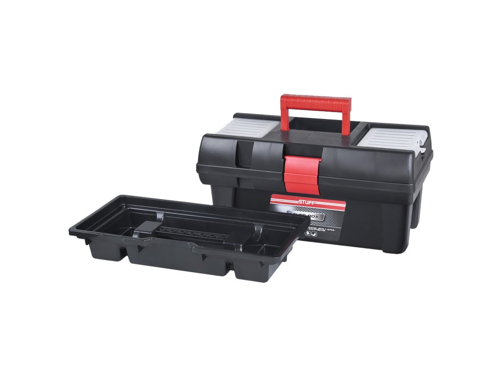 Kufr na nářadí Classic Profi je vyrobený z kvalitního plastu - ve vrchní části jsou dva organizéry pro drobné součástky uzavřené víkem.