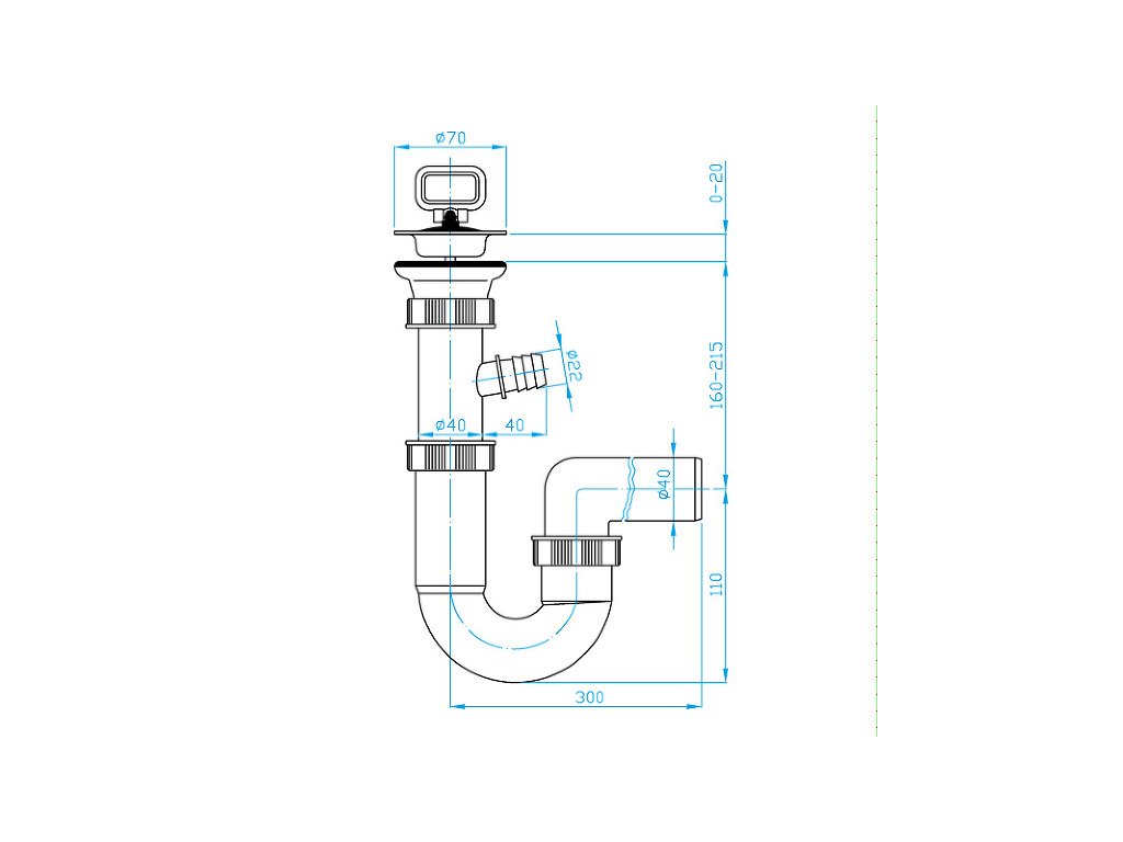 Sifon tvaru U 40 dřezový, pračkový vývod.