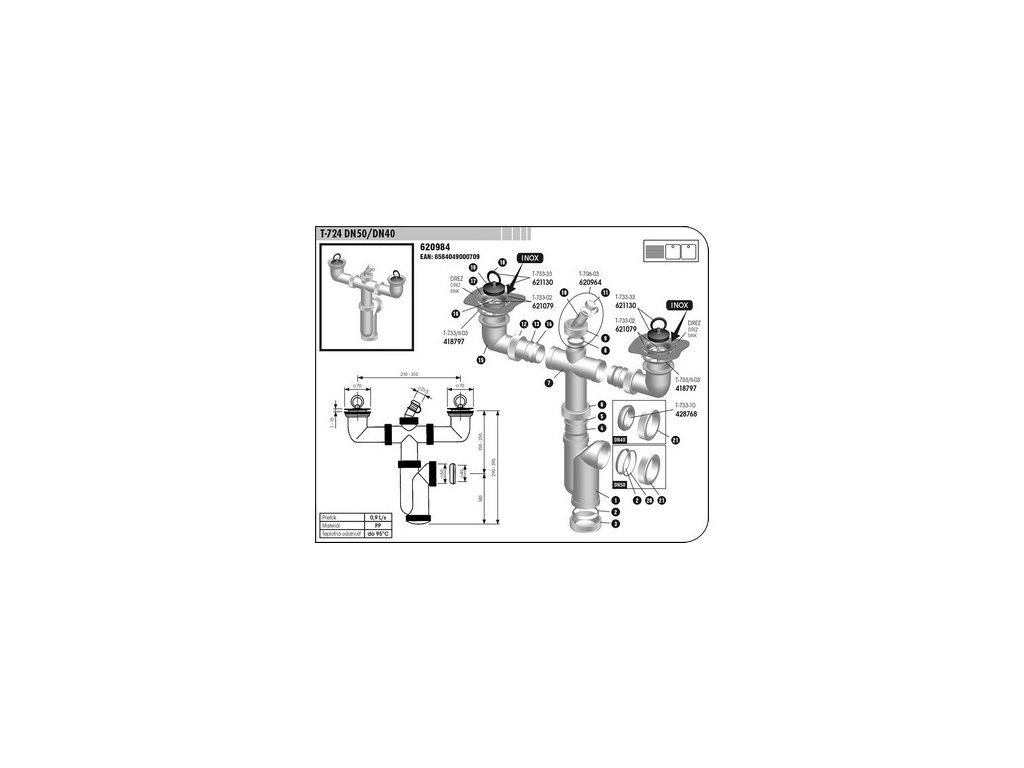 Dvojdřezový sifón Sam Holding nerezové misky T-724 DN50/DN40 620984