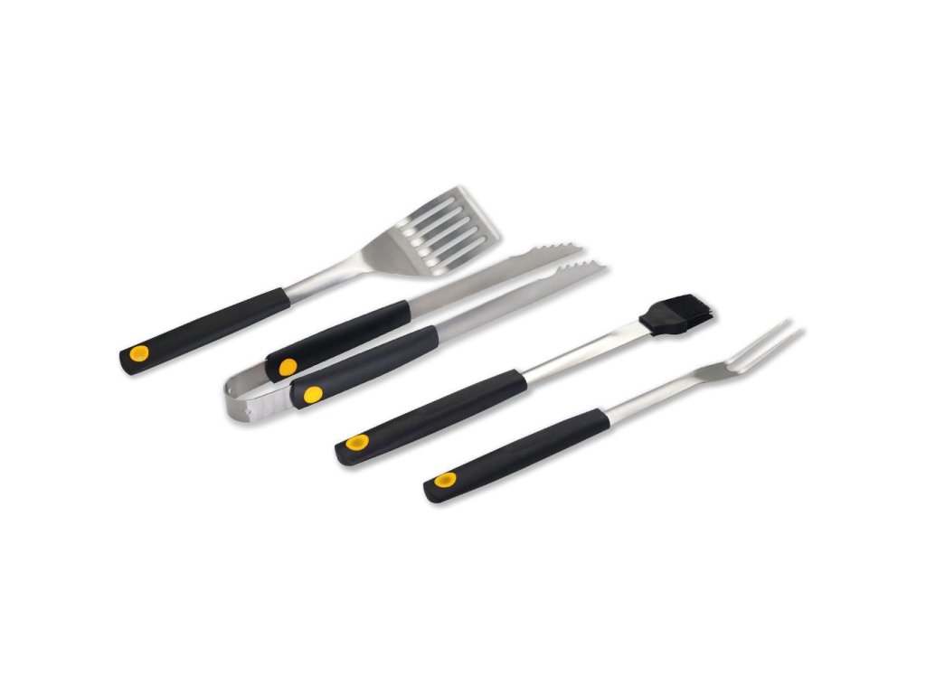 FZG 9015 Sada grilovacího náčiní 4ks4 kusy grilovacího náčiníLopatka,Vidlička, Kleště, štětkaplastové rukojeti, nerez