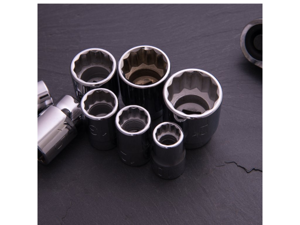 Ořech E117061 18mm vyrobený z vykované z chrom-vanadové oceli Chromovaný leštěný povrch Profil Maxi Drive - přenáší sílu na stěnu a ne na hranu matice Výhradně pro ruční použití Délka: 38 mm