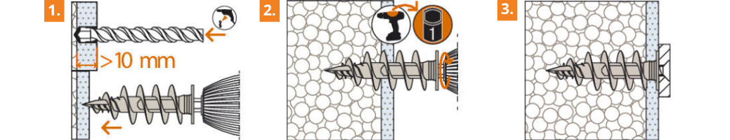 - Samovrtná špička se spolehlivě prokouše omítkou do tloušťky 10 mm bez předvrtání.