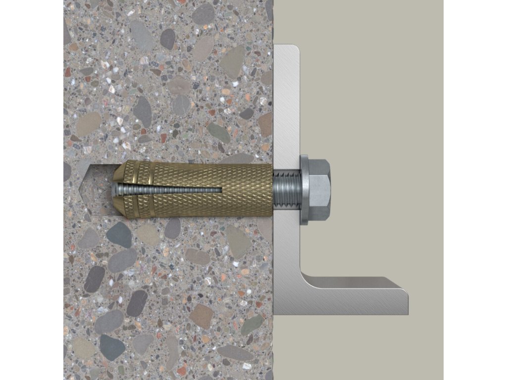 - Při zašroubovávání metrického šroubu se mosazná hmoždinka rozpírá v přední části a kotví spolehlivě do podkladu.