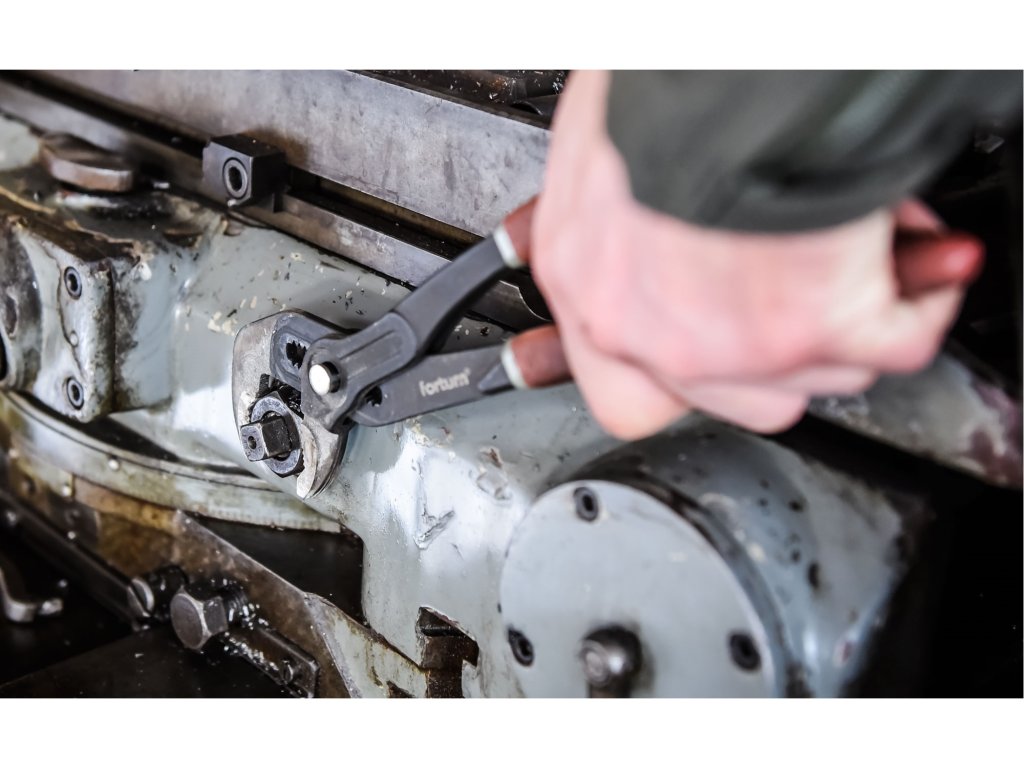 Fortum Hunter. Řada profesionálních nastavitelných kleští 4770202 s jednoduchým mechanismem, propracovanou konstrukcí a špičkovým materiálem (CrMoV ocel s čelistmi kalenými v oleji do tvrdosti cca 60HRC) slibuje nekonečnou řadu povolených závitů – bez přeskočení zámku! Zámek kleští Fortum Hunter uvolníte jednoduchým stiskem palce jedné ruky.