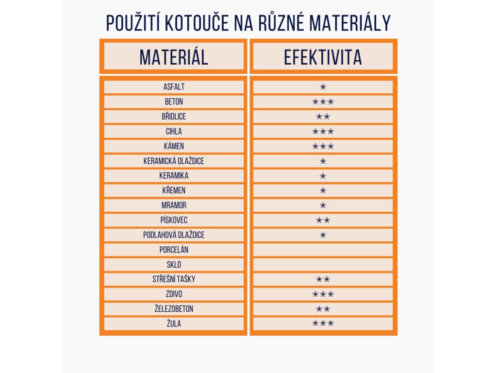Nejvhodnější použití na: beton, cihla, kámen, zdivo, žula