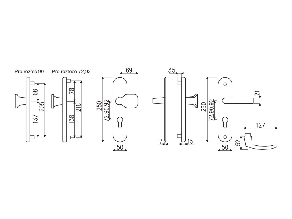 Hliníkové bezpečnostní kování - klika/klika bez překrytí vložky