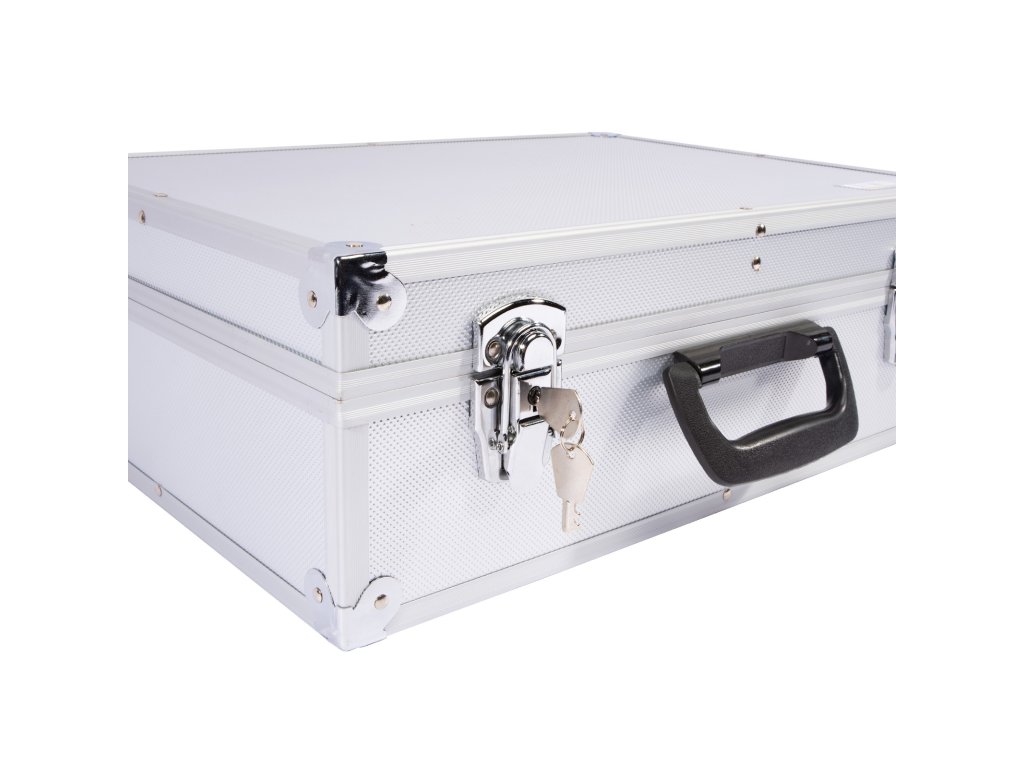 Hliníkový kufr na nářadí má nastavitelné vnitřní přihrádky, které umožňují libovolně přestavět na oddíly.