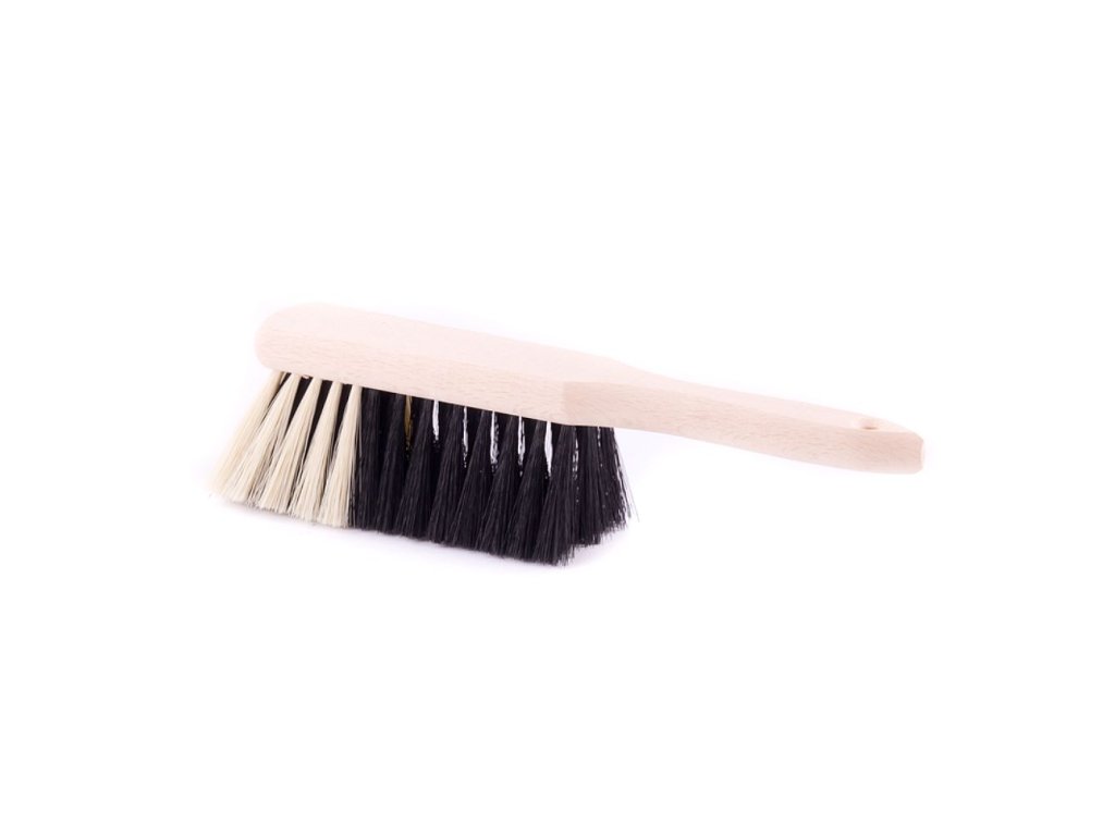 Smetáček ruční, dřevěné nelakované těleso, syntetická vlákna (PET).