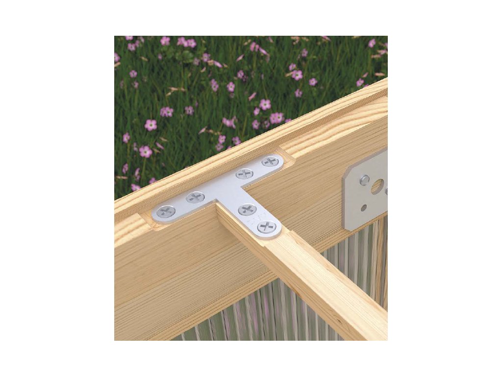 Používá se pro upevnění vodorovných trámů na vrchu sloupů. Díky spojování třech prvků současně se perfektně hodí na spojování dvou vodorovných trámů na sloupech