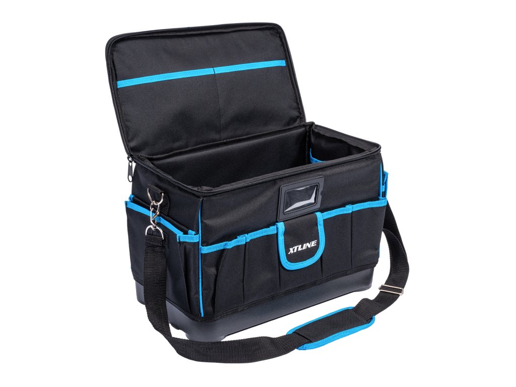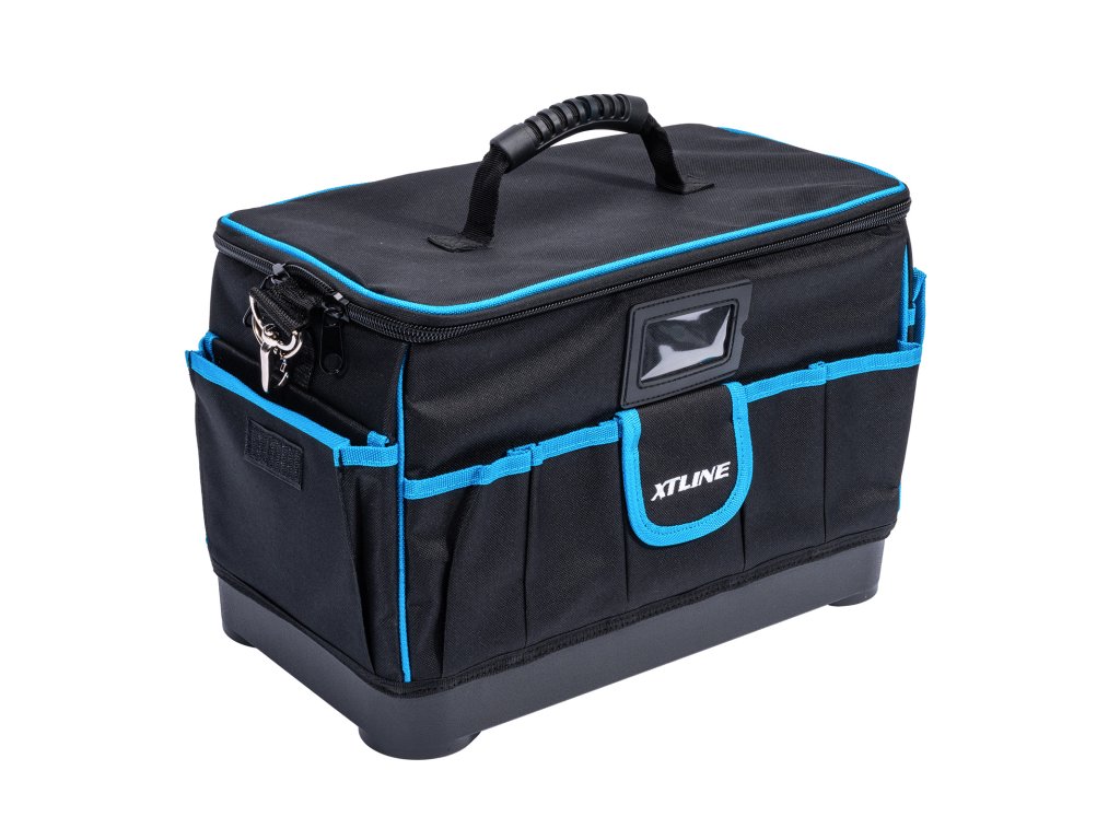 Nylonová taška ná nářadí má 31 kapes a 8 držáků na bity. Disponuje vyztuženým plastovým dnem. Maximální nosnost tašky činí 15 kg. Součástí balení je i ramenný popruh, který je možný připnout na kovová očka.