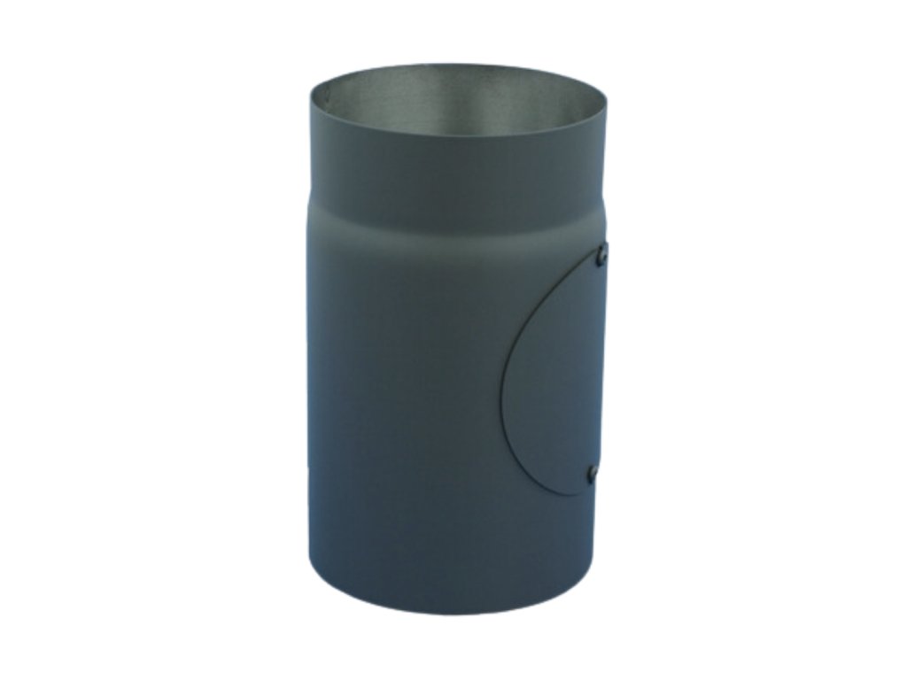 Silnostěnná roura 25 cm dlouhá pro připojení kamen ke komínu s čistícím otvorem.