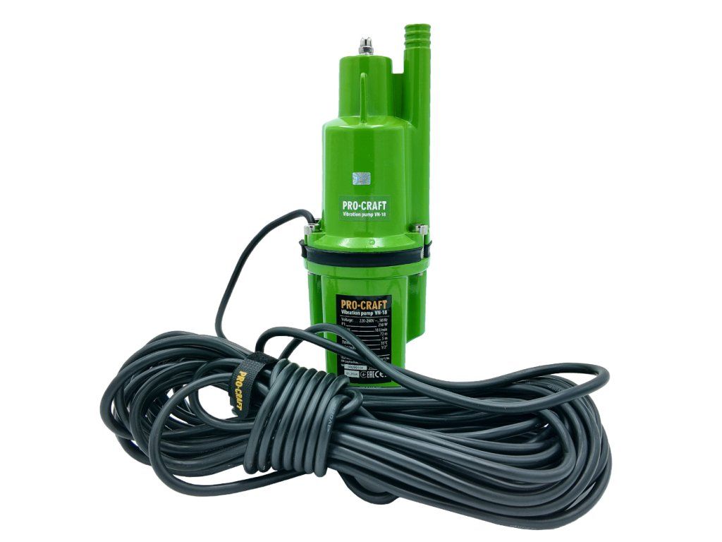 Vibrační čerpadlo Procraft VN-18 Přívodní kabel 15m. Příkon (W) 250 Max. přepravní objem (l/h) 1080 Maximální výtlak (m) 72 Průměr hadice: 3/4" Hmotnost (kg) 3,4 vrchní sání