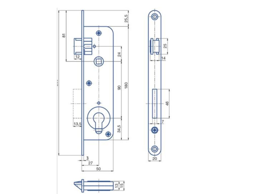 Zámek zadlabací G 223 P 50/90 vložkový čelo 20mm Hobes