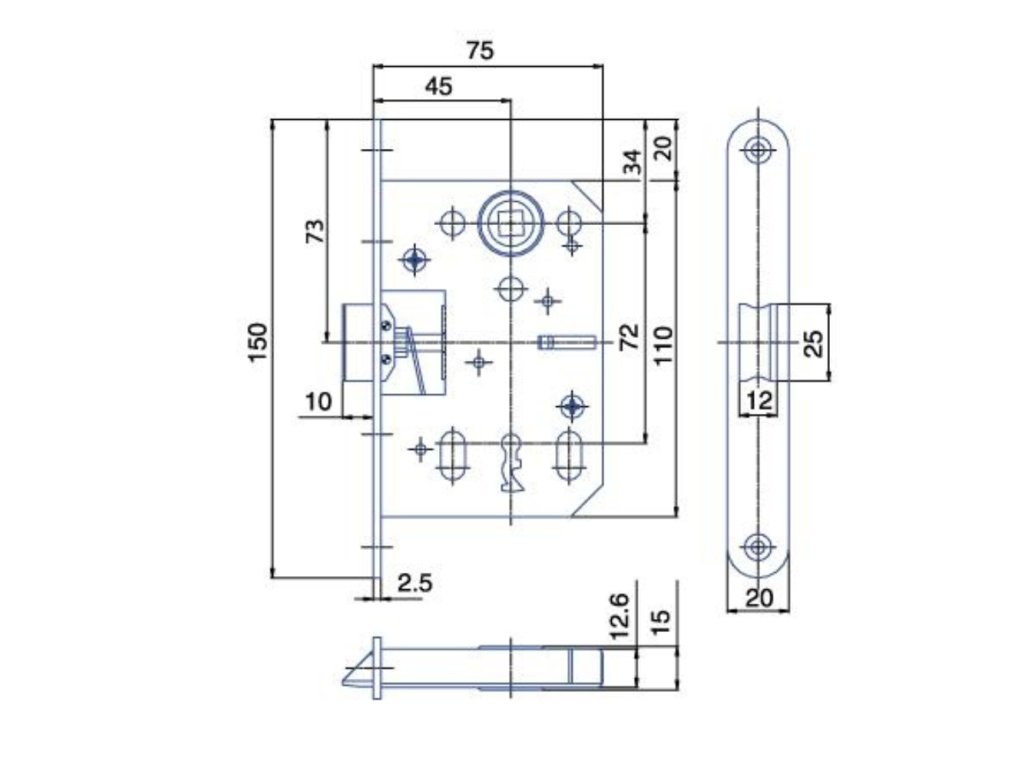 Zámek zadlabací K 051 75/72 obyčejný čelo 20mm Hobes