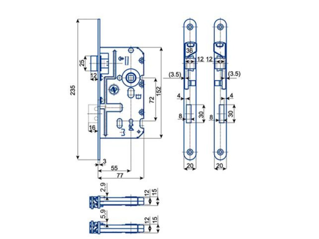 Zámek zadlabací K 220 L 72/77 obyčejný čelo 20mm Hobes