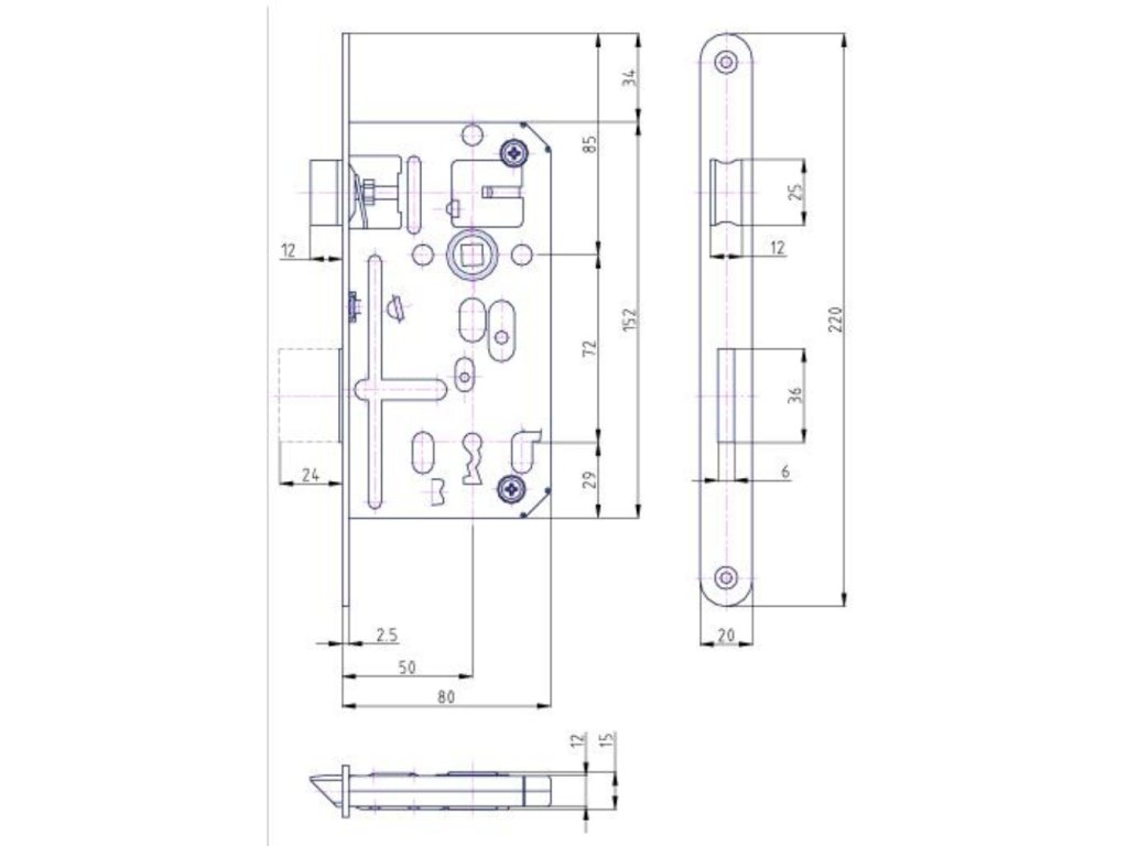 Zámek zadlabací K134 P-L 80/72 obyčejný čelo 20mm Hobes
