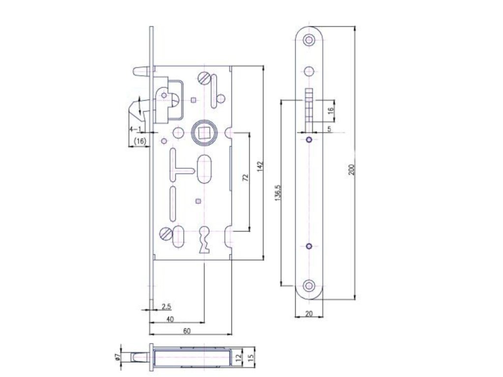 Zámek zadlabací na posuvné dveře K106 60/72 obyčejný čelo 20mm Hobes